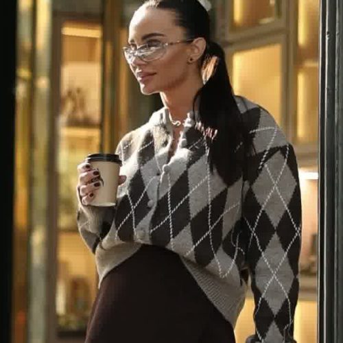 Sweter oversize w romby zapinany na guziki