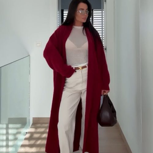 Damski dwoczęściowy garnitur z kardiganem i spódnicą