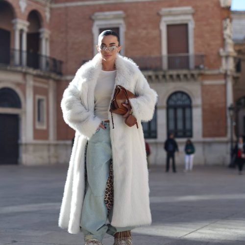 Płaszcz z futra z bawełny biały