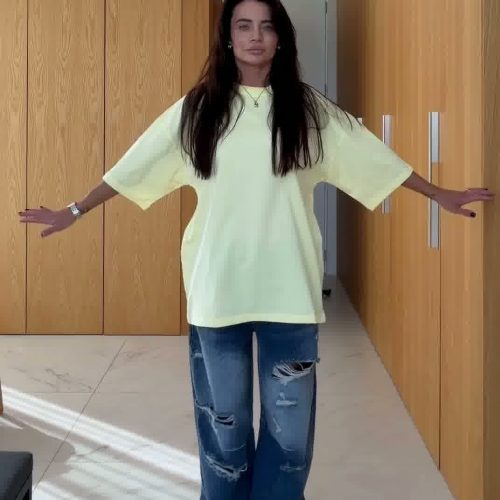 Jeansy damskie oversize z przetarciami – bawełna art. 13347