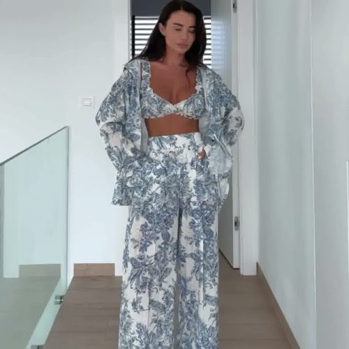 Komplet lniany 3-częściowy (koszula + top + spodnie) art. 13116