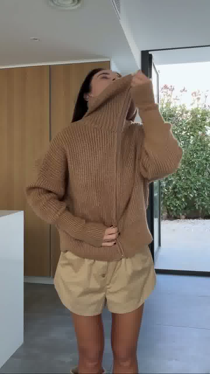 Stylowa brązowa bluza damska wykonana z wysokiej jakości materiału z dodatkiem 50% wełny. Miękka, ciepła i komfortowa w noszeniu, idealna na chłodniejsze dni oraz codzienne stylizacje.
