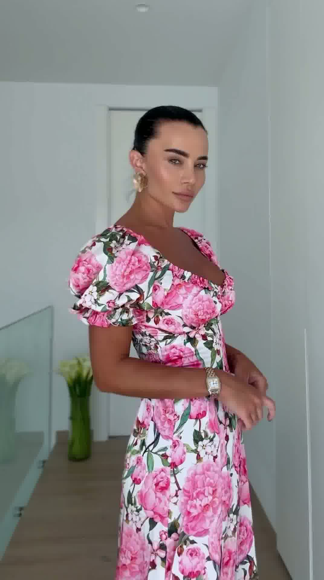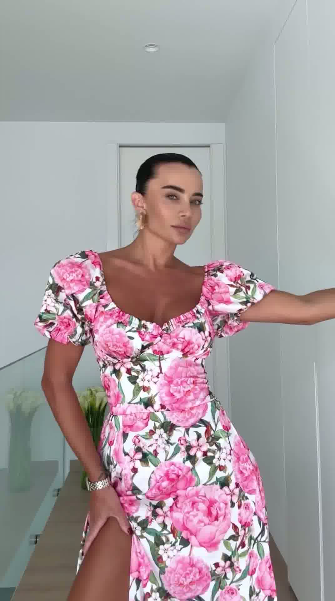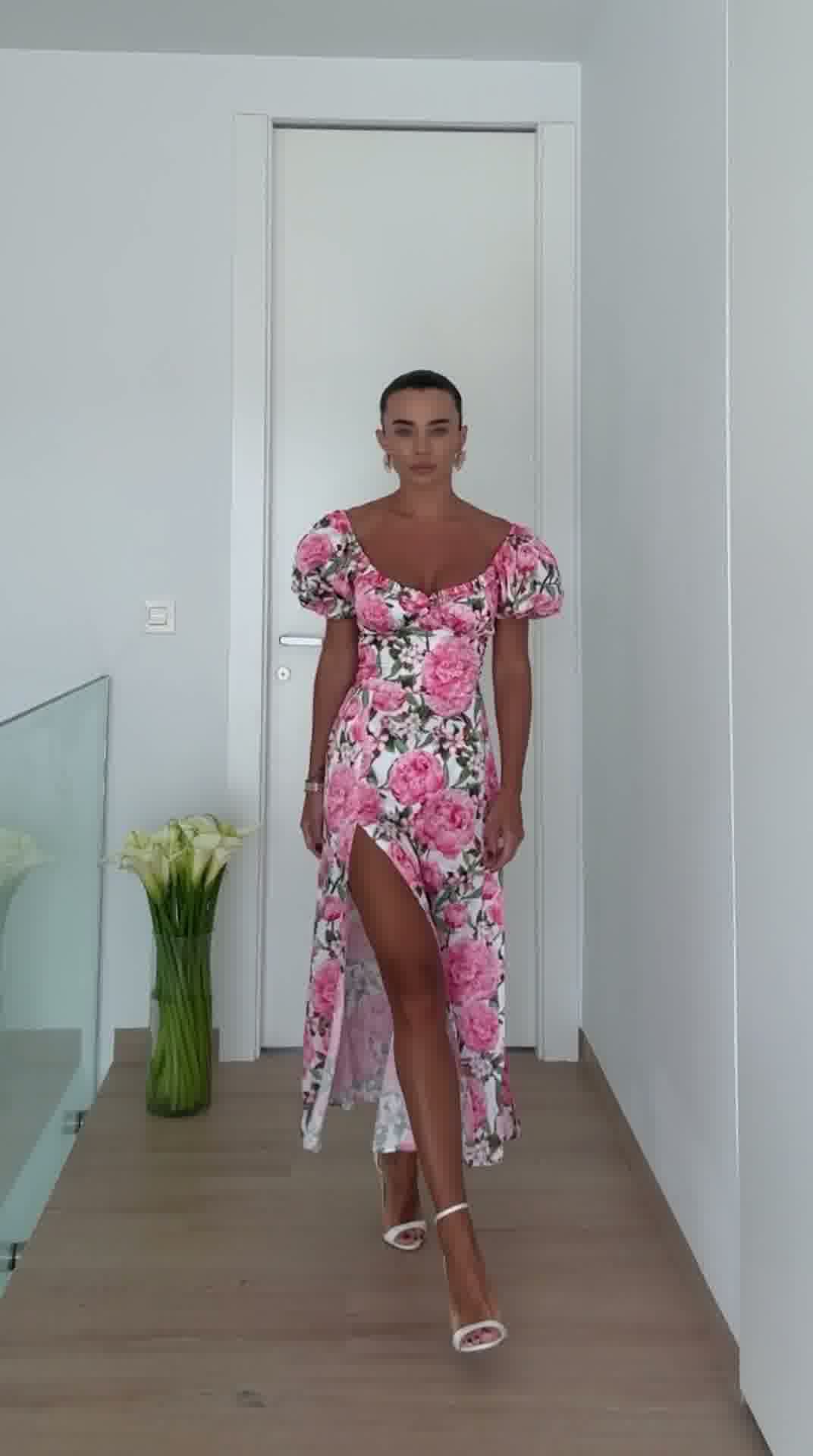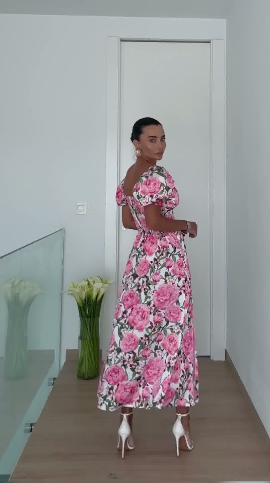 sukienka damska, sukienka letnia, sukienka z rozcięciem, sukienka kwiatowa, sukienka midi, elegancka sukienka damska, moda damska butik, sukienka na lato, sukienka z bufkami