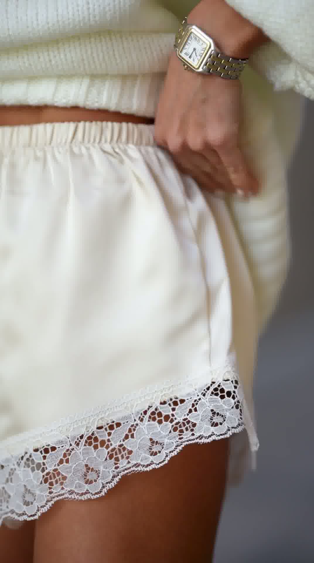 jedwabne szorty damskie, szorty z jedwabiu, szorty z koronką, eleganckie szorty damskie, lekkie szorty na lato, luksusowa odzież damska, moda damska premium, sklep internetowy z odzieżą damską, elenayeger.pl