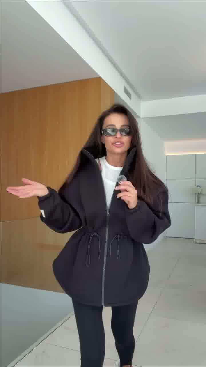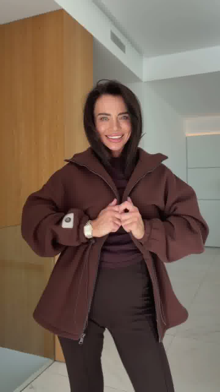 Stylowy kardigan o luźnym, nowoczesnym kroju wykonany z wysokiej jakości dzianiny typu trójnitka na miękkim fleece. Model zapinany na zamek, z wysokim kołnierzem i regulacją w talii, która pozwala dopasować fason do sylwetki.