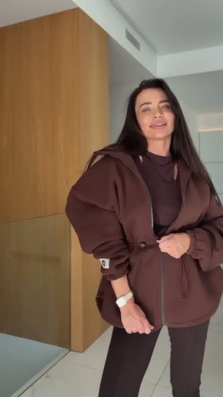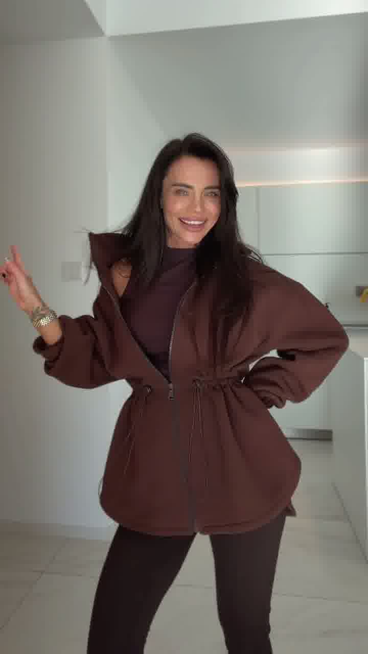 kardigan damski oversize, bluza na zamek damska, kardigan z regulacją w talii, ciepła bluza fleece, modna bluza casual, odzież damska butik, bluza jesienna damska, trójnitka na fleece