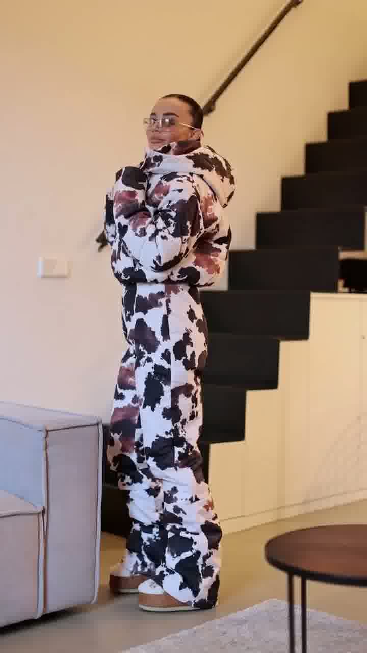 S OB 116, OT 66 (+5), OS 98, ramiona 53, rękaw 63, długość kurtki 42, długość spodni po boku 110, wewnętrzna długość nogawki 81