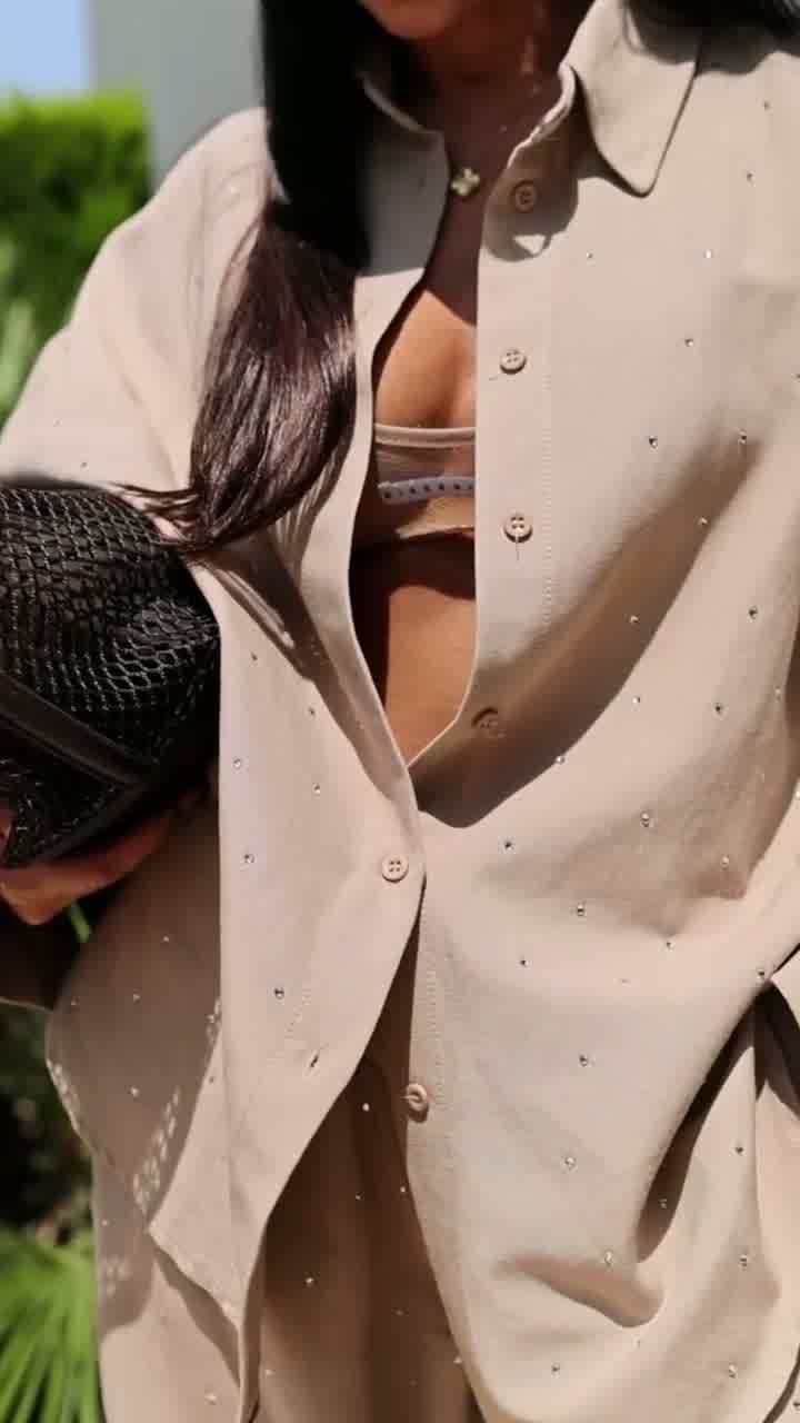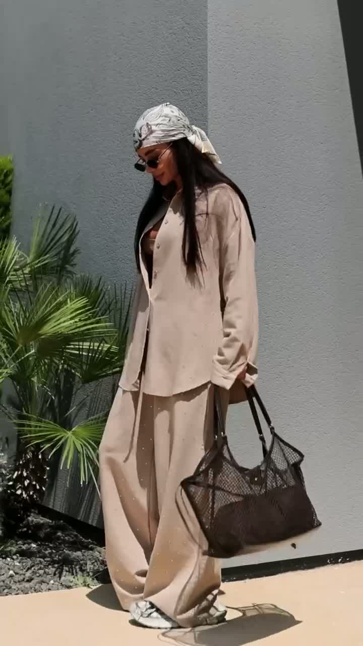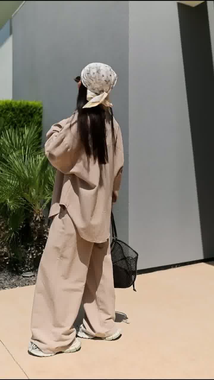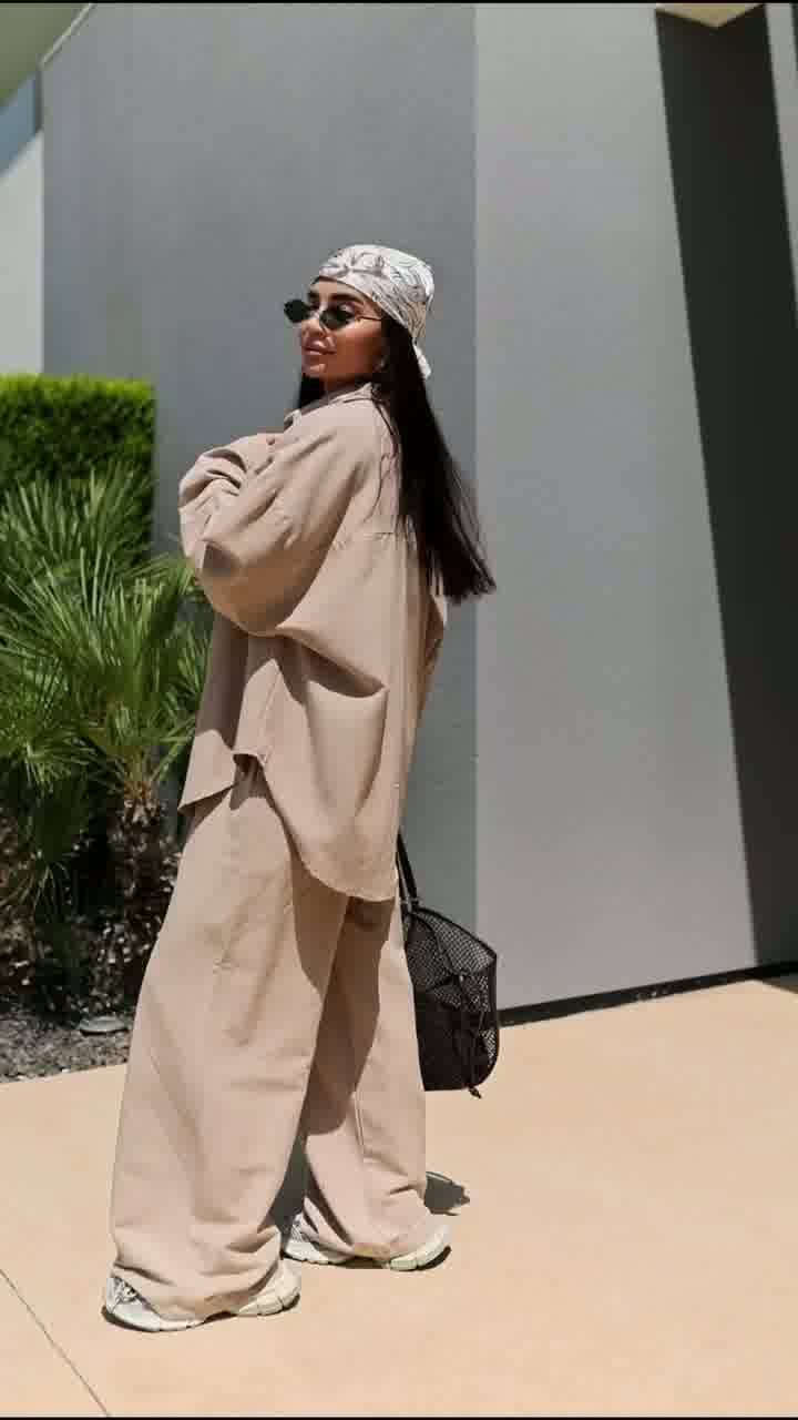 Stylowy komplet lniany składający się z luźnej koszuli i szerokich spodni. Naturalna tkanina zapewnia komfort i przewiewność, dzięki czemu model idealnie sprawdzi się w ciepłe dni. Swobodny krój nadaje stylizacji lekkości i nowoczesnego charakteru – świetny wybór na co dzień, podróże i wakacyjne outfity.