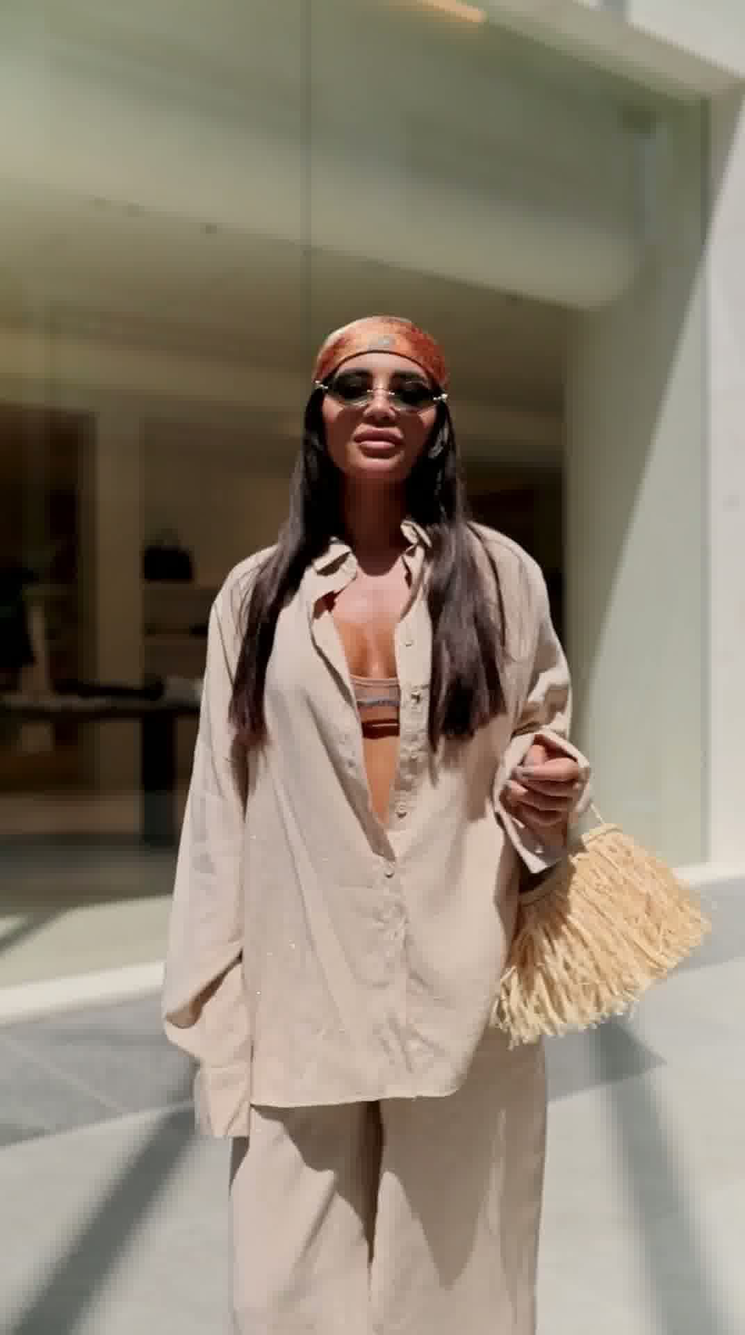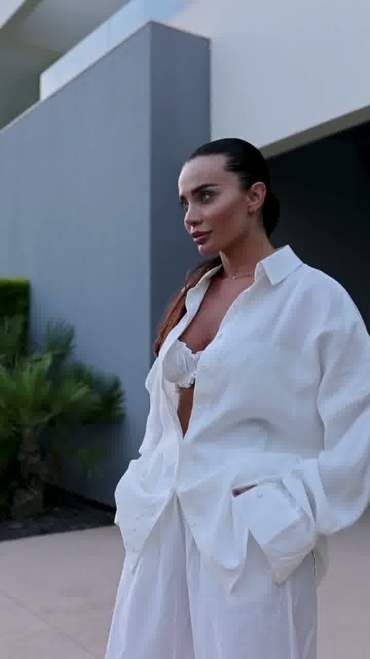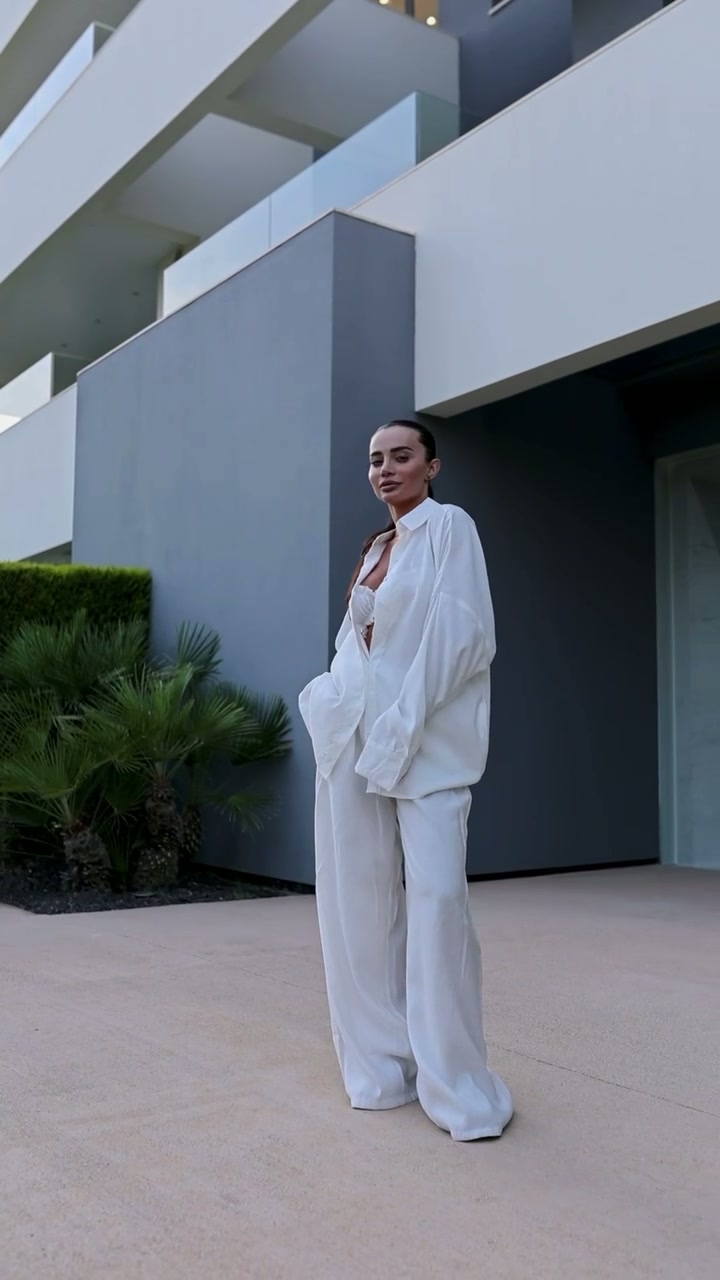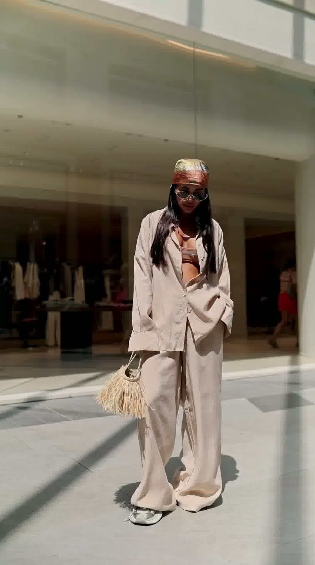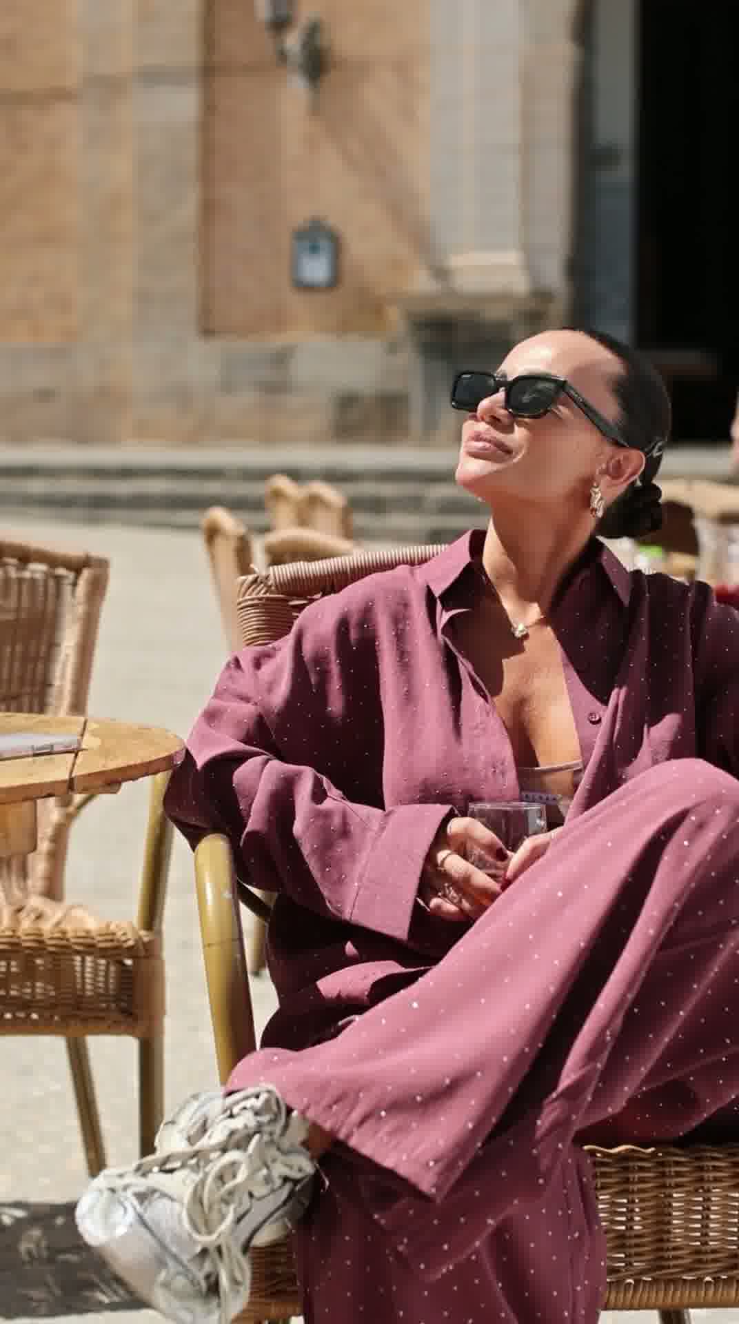 Stylowy komplet składający się z luźnej koszuli i szerokich spodni, ozdobiony delikatnymi cyrkoniami (efekt subtelnego błysku). Idealny wybór na co dzień w wersji premium lub na wyjścia w stylu effortless chic.