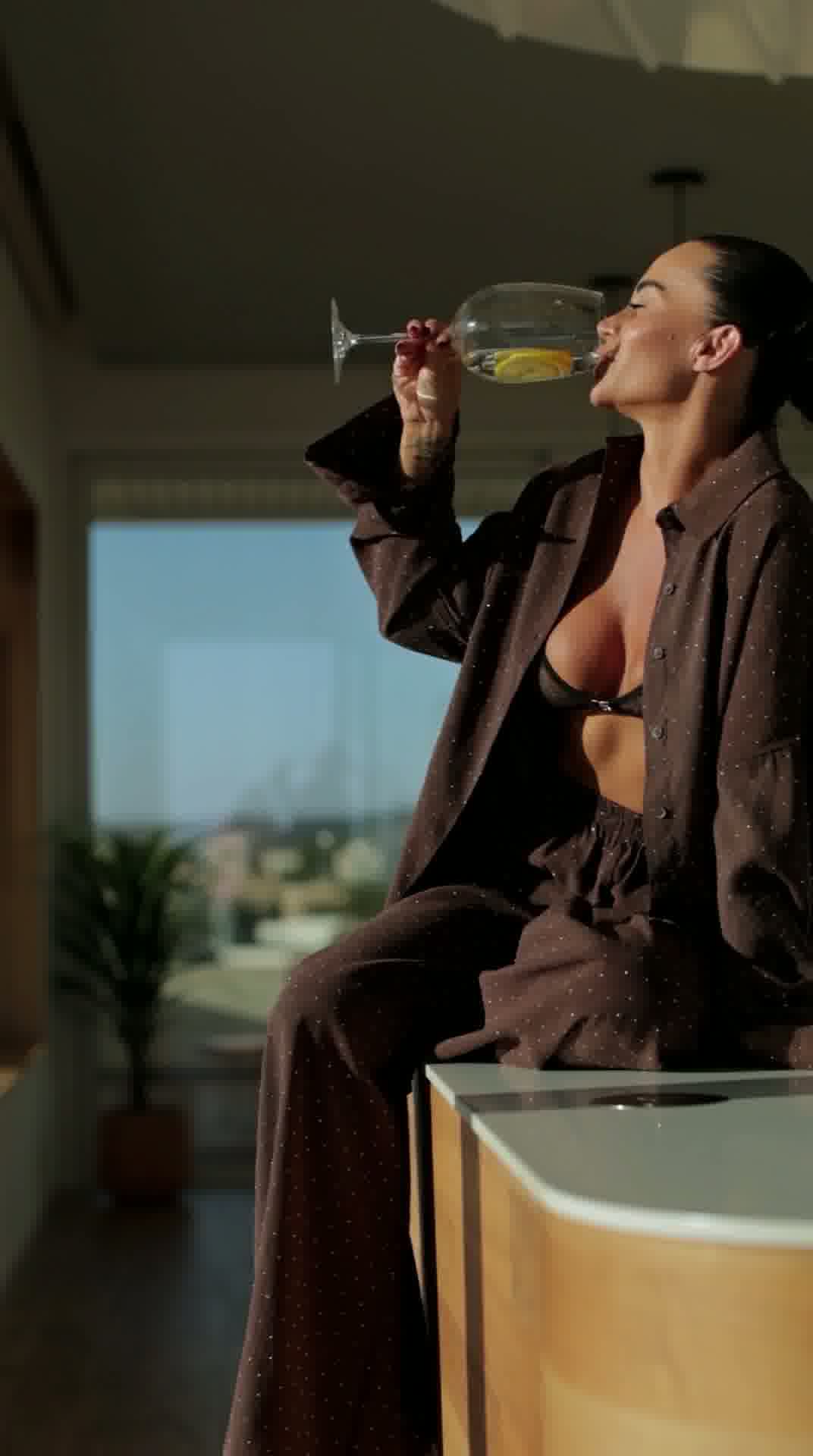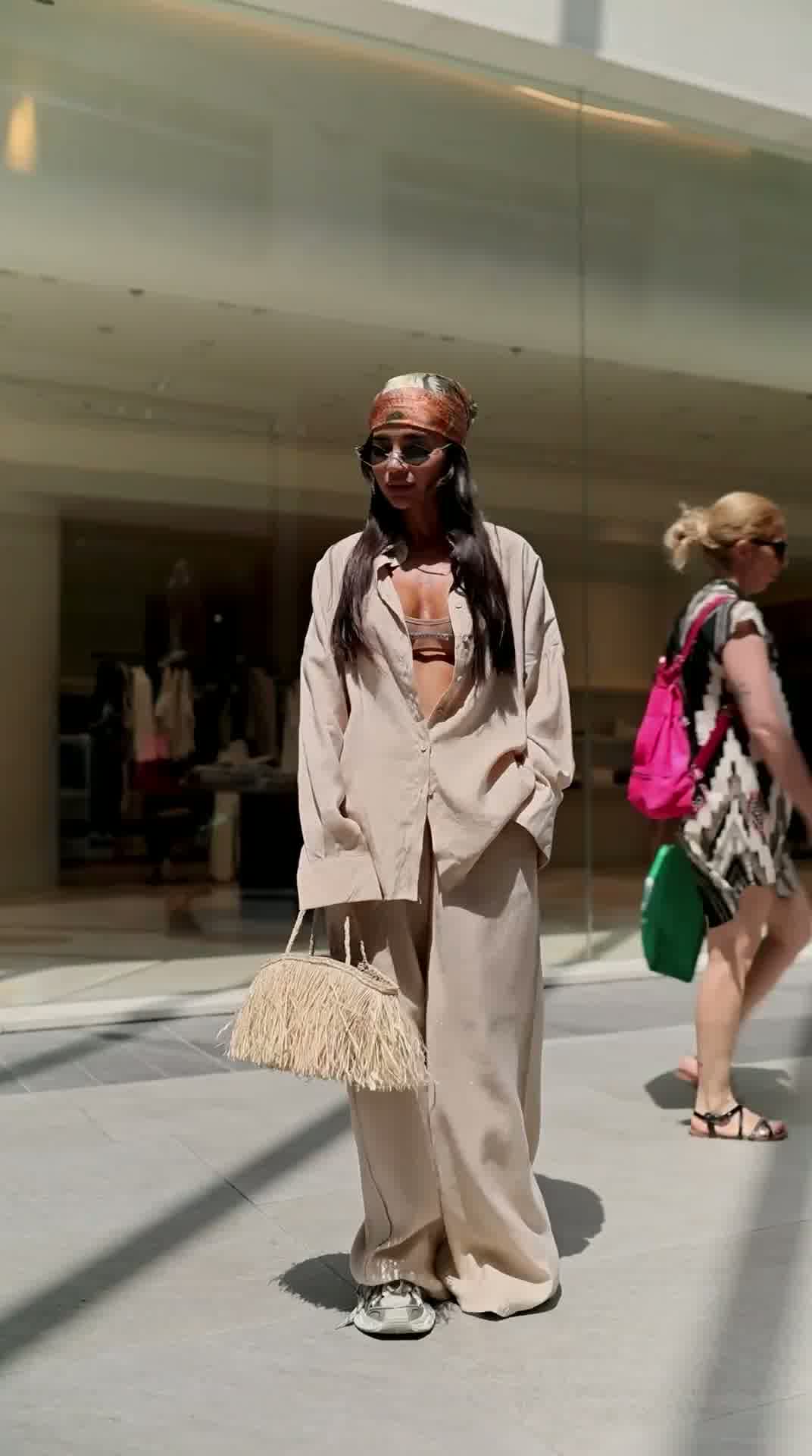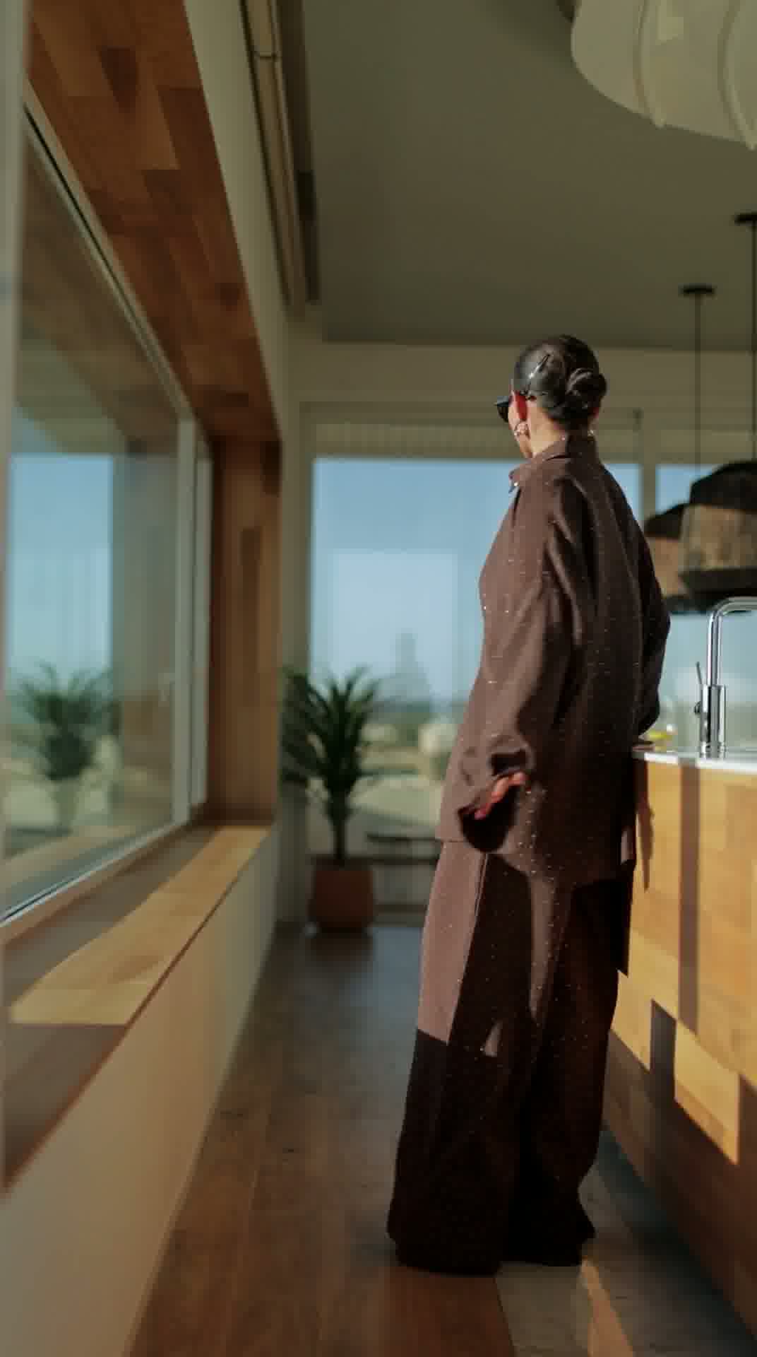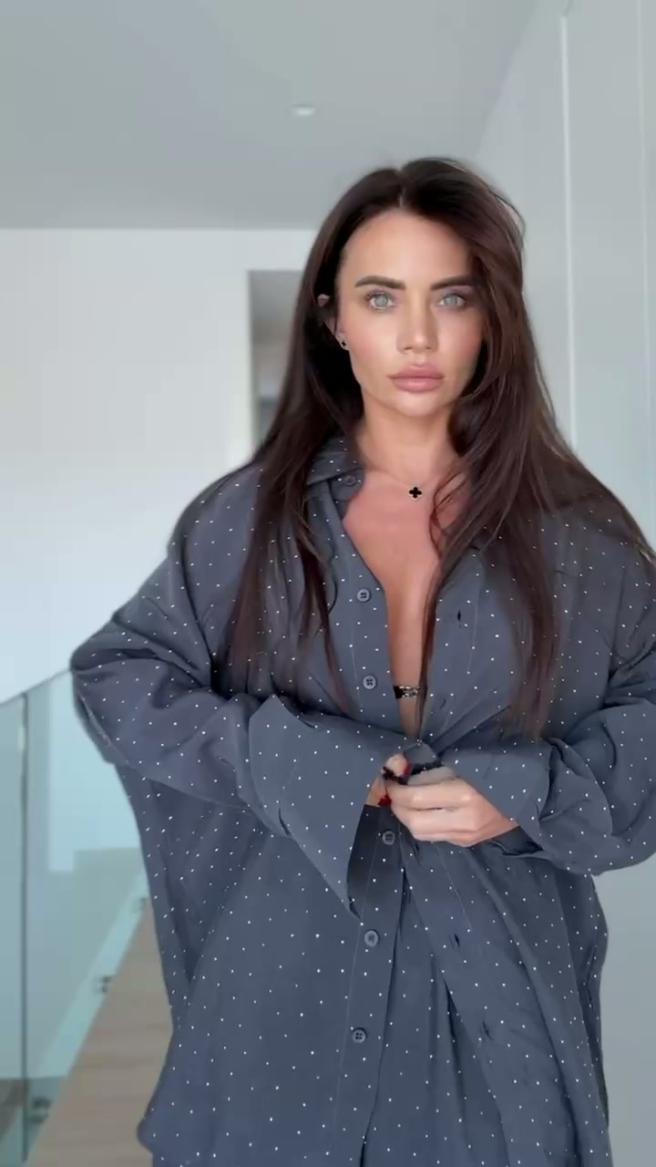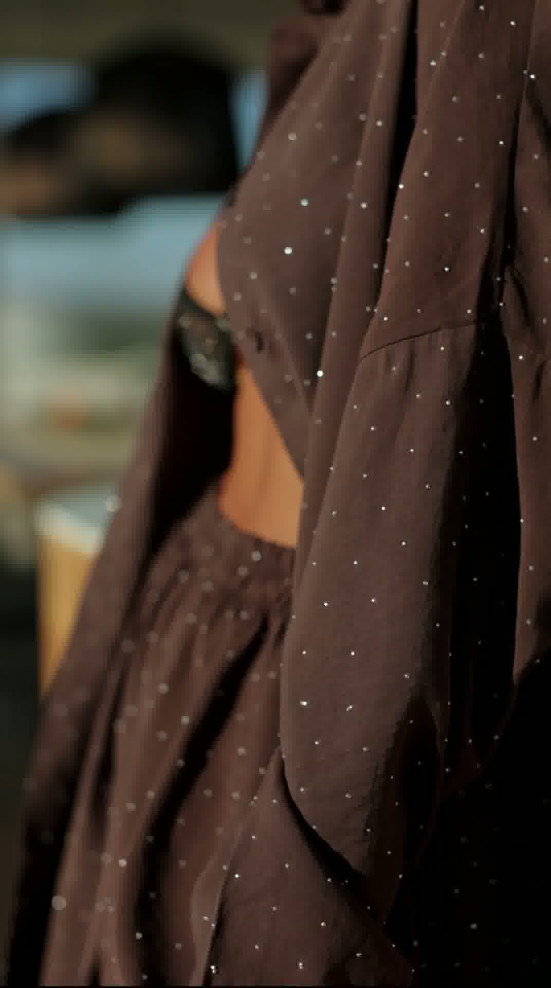 Stylowy komplet składający się z luźnej koszuli i szerokich spodni, ozdobiony delikatnymi cyrkoniami (efekt subtelnego błysku). Idealny wybór na co dzień w wersji premium lub na wyjścia w stylu effortless chic.