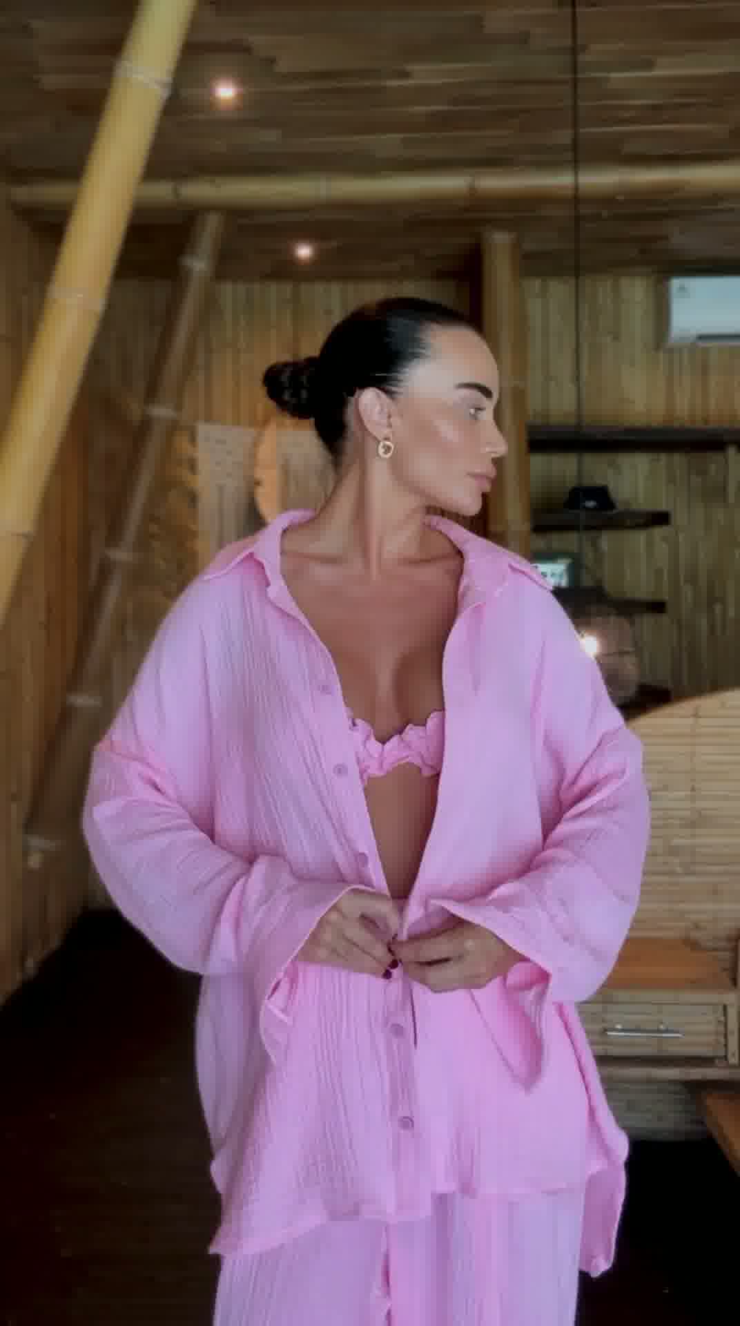Komplet muslinowy 3-częściowy (koszula + top + spodnie) art. 13075