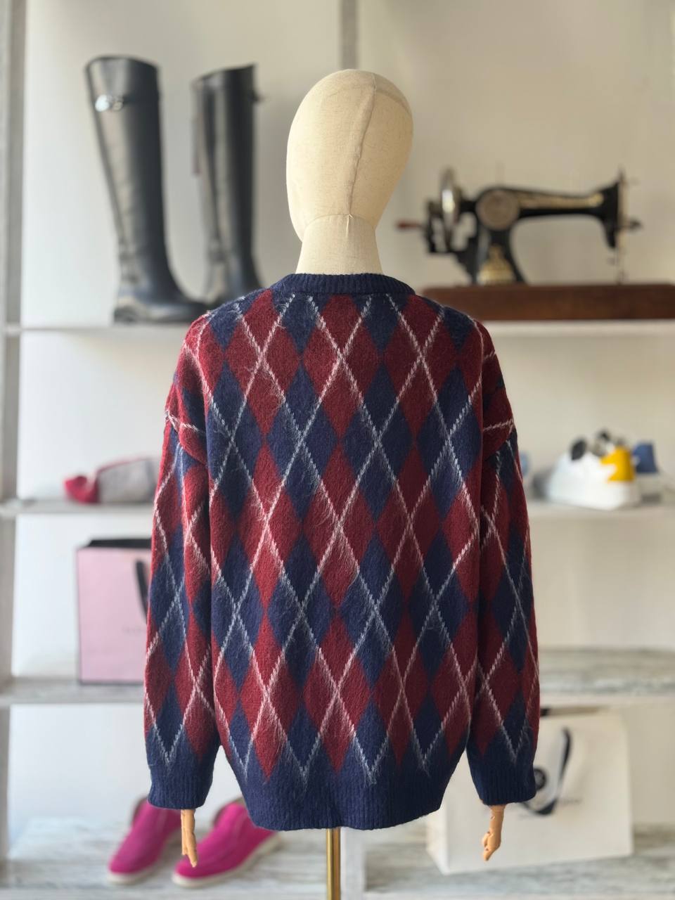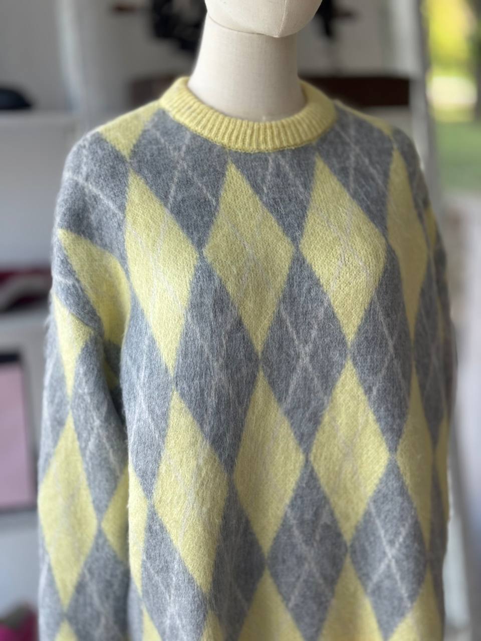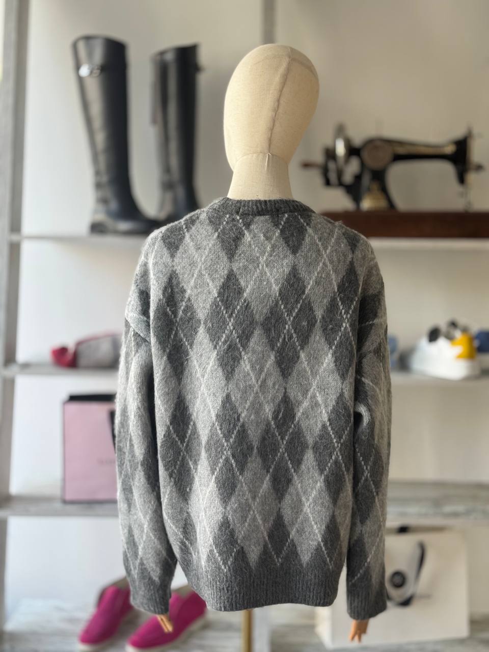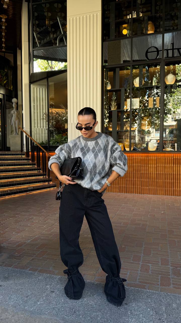 Modny sweter damski o klasycznym wzorze w romby, który łączy styl retro z nowoczesną modą miejską. Idealny wybór do codziennych stylizacji – świetnie komponuje się z jeansami, spodniami materiałowymi oraz sneakersami czy botkami. To uniwersalny model na jesień i zimę, który sprawdzi się zarówno na co dzień, jak i w casualowych stylizacjach do pracy lub na wyjście do miasta.